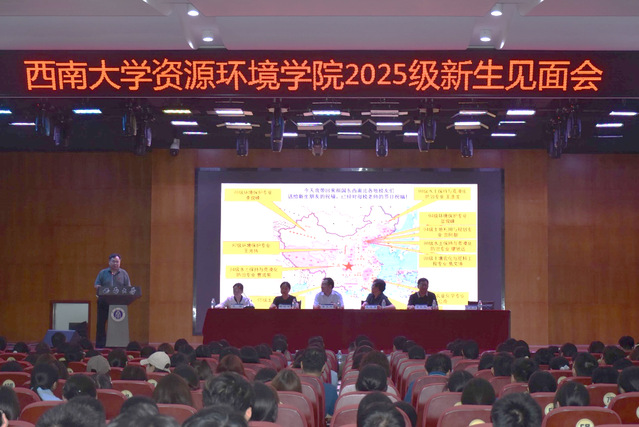 此次行程中,李俊峰院长还以西南大学资源环境学院优秀校友身份,受邀出席学院2025级新生开学典礼并发表讲话。在新生开学典礼上,李俊峰院长结合自身在西南大学的求学经历与多年从事水资源高效利用领域研究的实践经验,鼓励新生们立足学科特色,既要夯实专业基础,也要主动关注生态保护、水资源利用等国家战略需求,为绿色低碳发展与生态文明建设贡献青春力量。